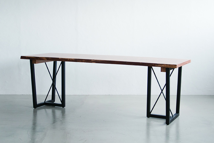 MATERIAL : ナラ一枚板 クリアウレタン仕上げ、アイアン焼付塗装